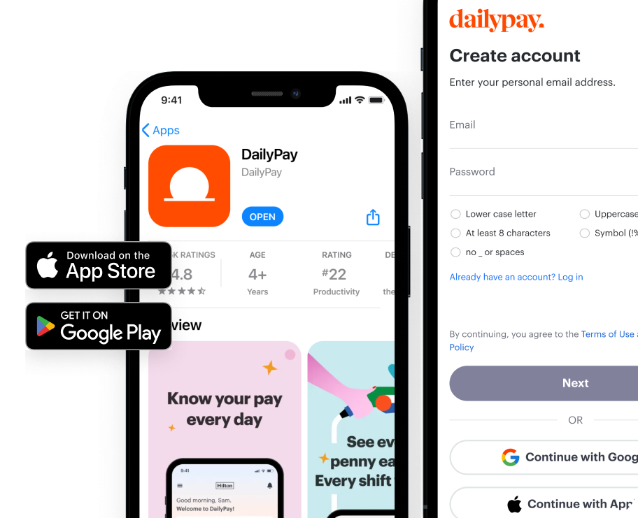 Employees download the DailyPay app and create their account in minutes.