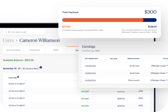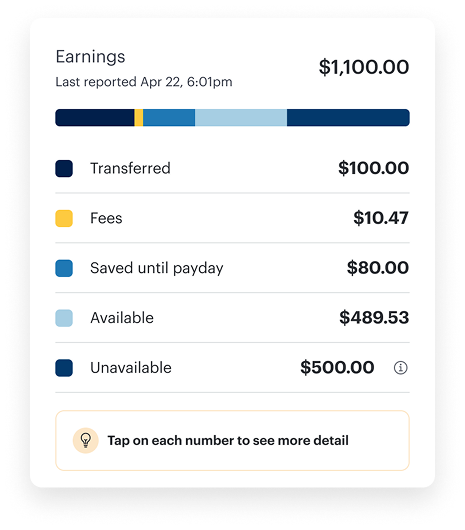 As they work, their earned wages become available in the app. They can see how much they've earned and can access.