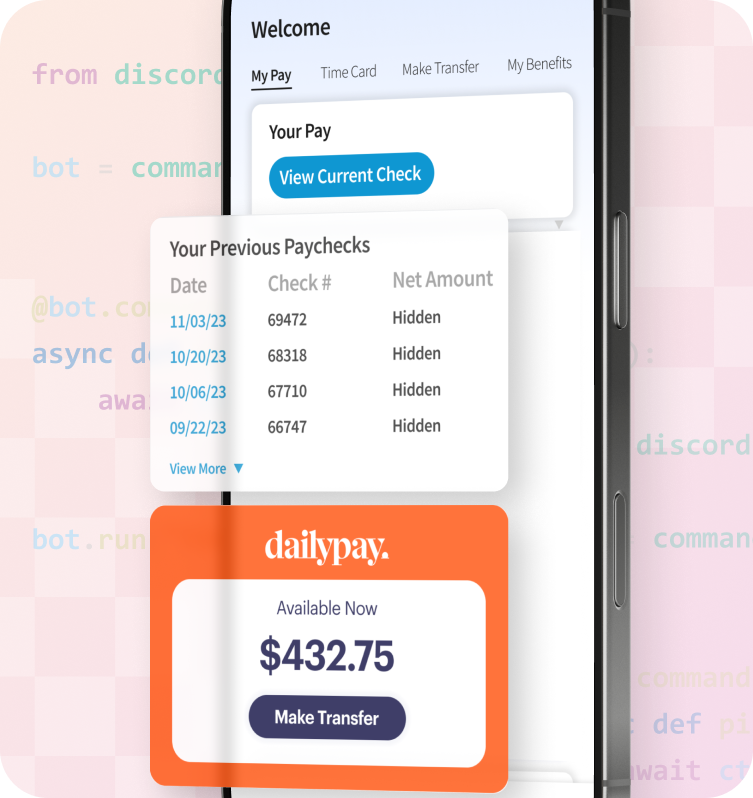To build a specific user experience for your On-Demand Pay app or platform, you can build directly into DailyPay’s APIs, adding on-demand capabilities to the services you already provide.