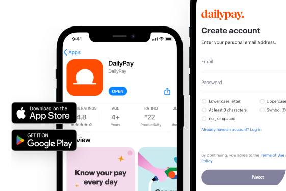Employees download the DailyPay app and create their account in minutes.
