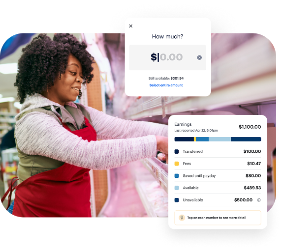 As they work, their earned wages become available in the app. They can see how much they've earned and can access.